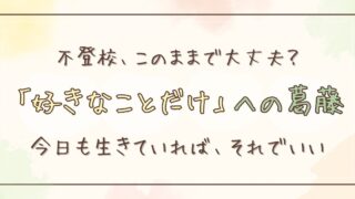 「好きなことだけさせてあげればいい」不登校について調べると、よく見かける言葉です。否定はしません。実際、それで回復するケースもあると思います。でも、好きなことだけの状態が長く続いたとき、親はどう感じるのか。そこはあまり語られていないように感...